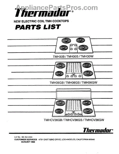 Parts for Thermador TMH30S: 01 - Cover Parts
