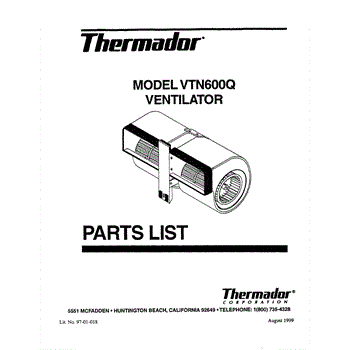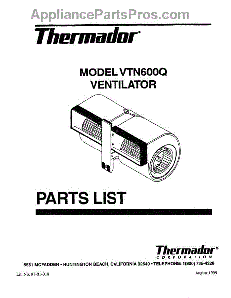 Parts for Thermador VTN600Q: 01 - Cover Parts