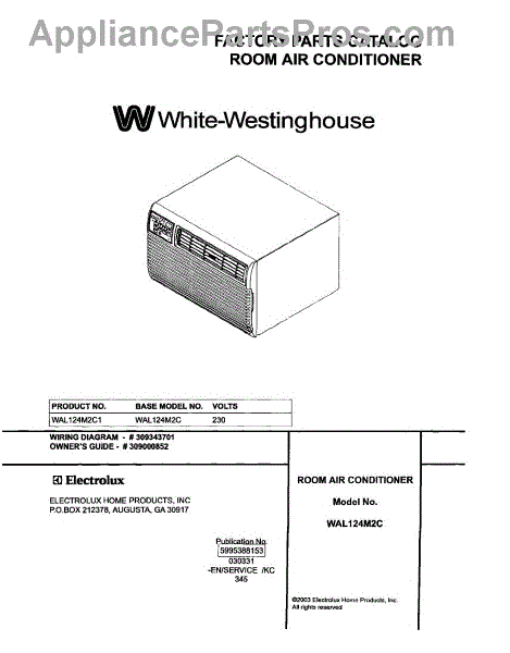 Parts for White Westinghouse WAL124M2C1: 01 - Cover Parts