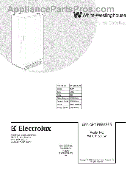 Parts for White Westinghouse WFU1150EW0: 01 - Cover Parts