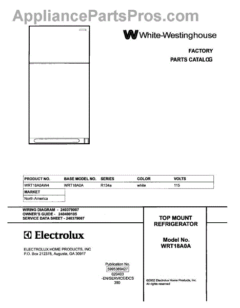 Parts for White Westinghouse WRT18A0AW4: 01 - Cover Parts