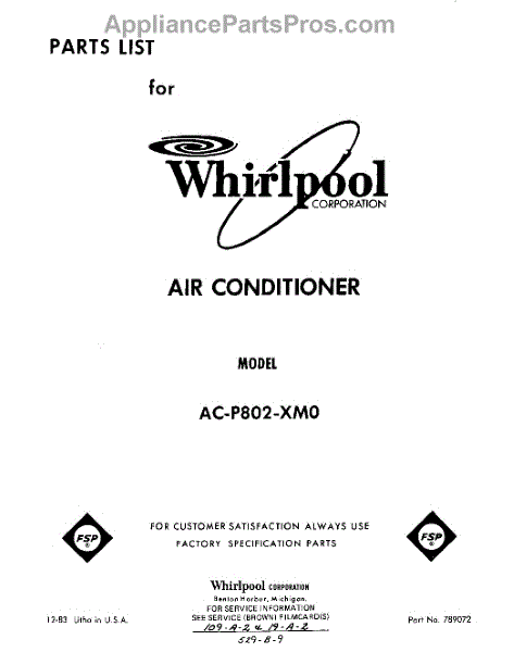 Parts for Whirlpool ACP802XM0: 01 - Cover Parts