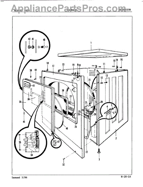 This dryer exhaust fan is used on some Admiral, Crosley, Hoover, Magic Chef, Maytag, Montgomery Ward and Norge brands. Size: 3-1/8 inches deep, 7 1/2 inch fin diameter, 6 3/4 inch hub diameter, 20 standard fins, 1/2 inch diameter motor shaft, 7/16 inch diameter motor shaft to flat side of shaft. Blower wheel clamp not included. For the clamp order 25-7855.