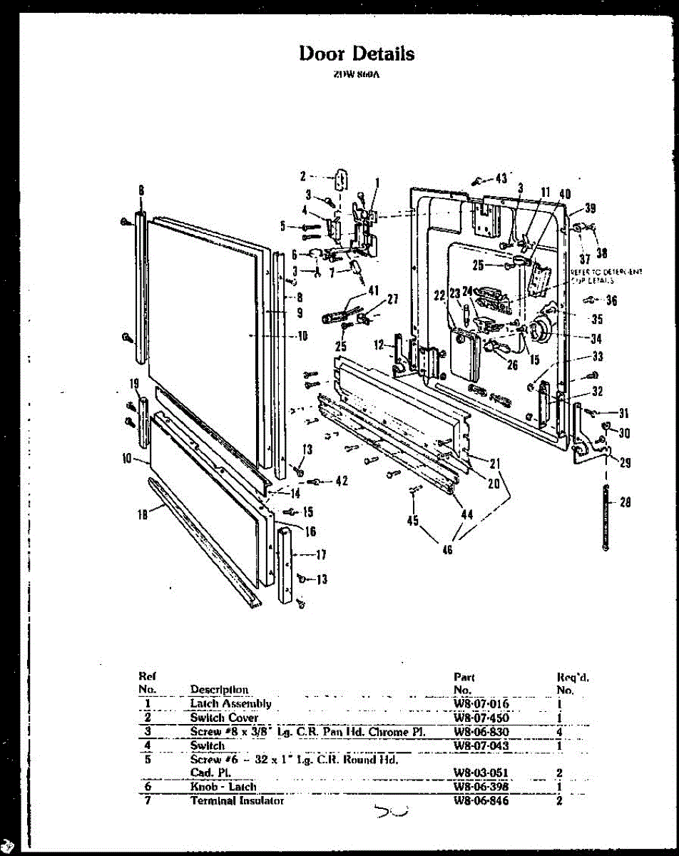 Parts for Amana ZDW-860A: 01 - Door Details Parts