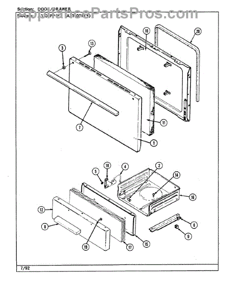 Parts for Admiral A3100PPA: 01 - Door / Drawer Parts