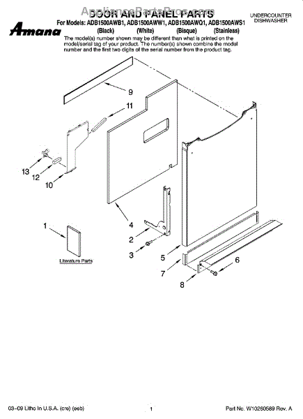 Parts for Maytag ADB1500AWQ1: 01 - Door And Panel Parts