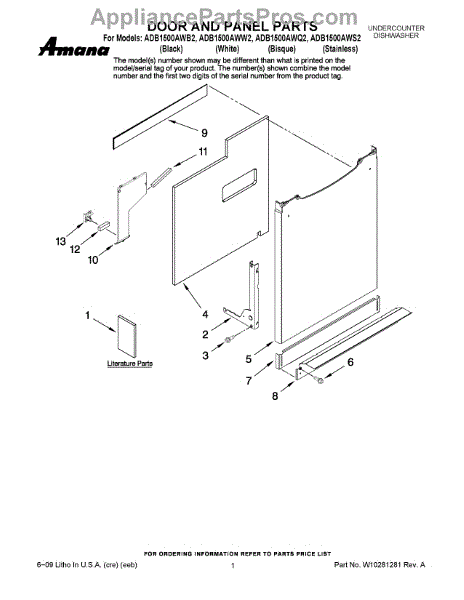 Parts for Maytag ADB1500AWW2: 01 - Door And Panel Parts