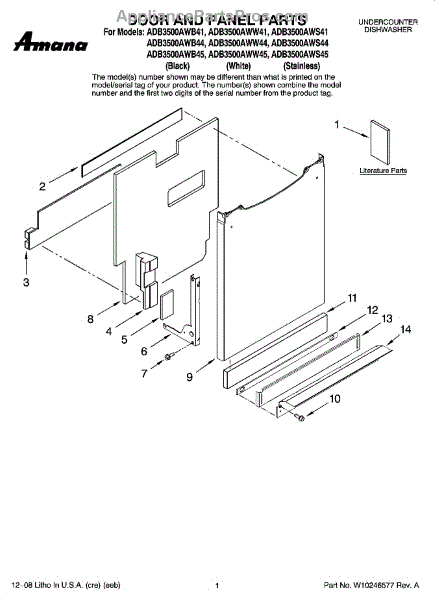 Parts for Maytag ADB3500AWW45: 01 - Door And Panel Parts