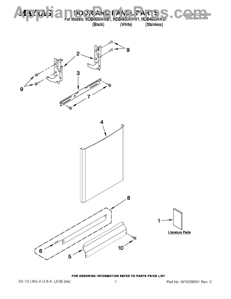 The Door Hinge Assembly is an OEM part for Whirlpool dishwashers. This hinge assembly is responsible for attaching the dishwasher door to the main body, allowing it to open and close smoothly while maintaining a proper seal when shut.