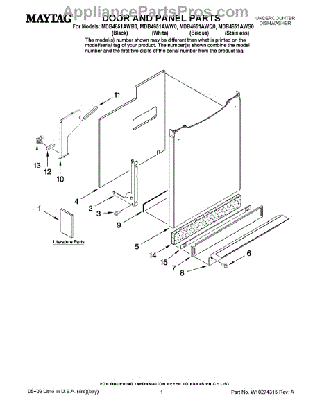 Parts for Maytag MDB4651AWQ0: 01 - Door And Panel Parts