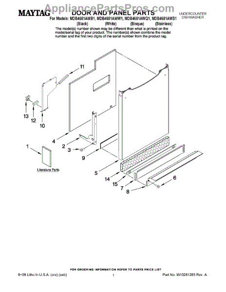 Parts for Maytag MDB4651AWQ1: 01 - Door And Panel Parts