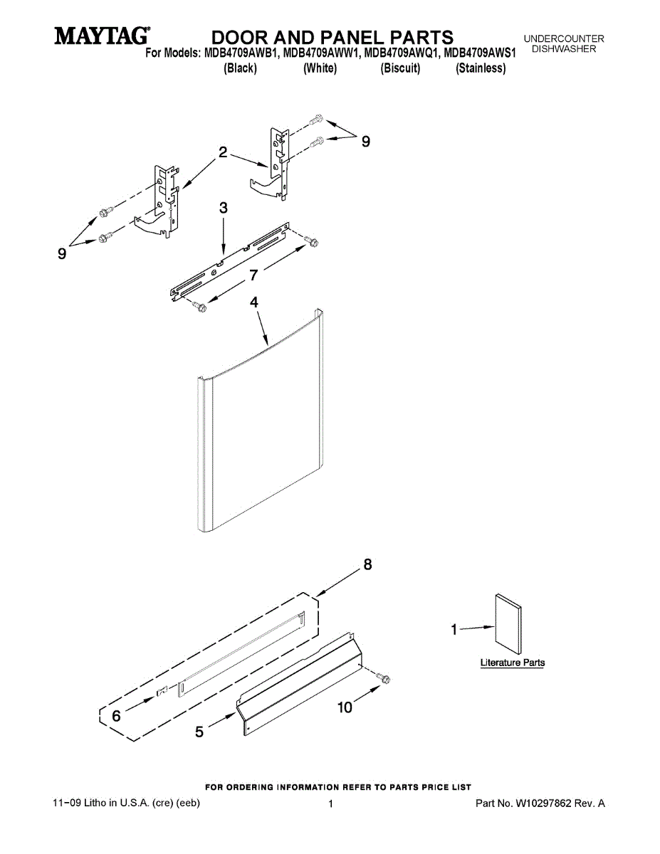 Replacement dishwasher panel that covers and protects internal components. Install to replace a dented, cracked, worn, or missing panel piece.