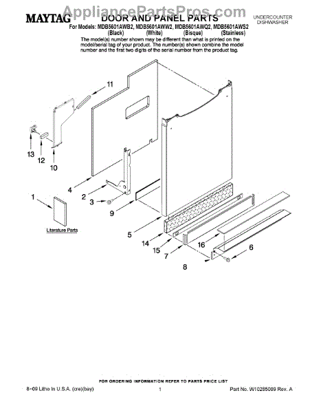 Parts for Maytag MDB5601AWS2: 01 - Door And Panel Parts