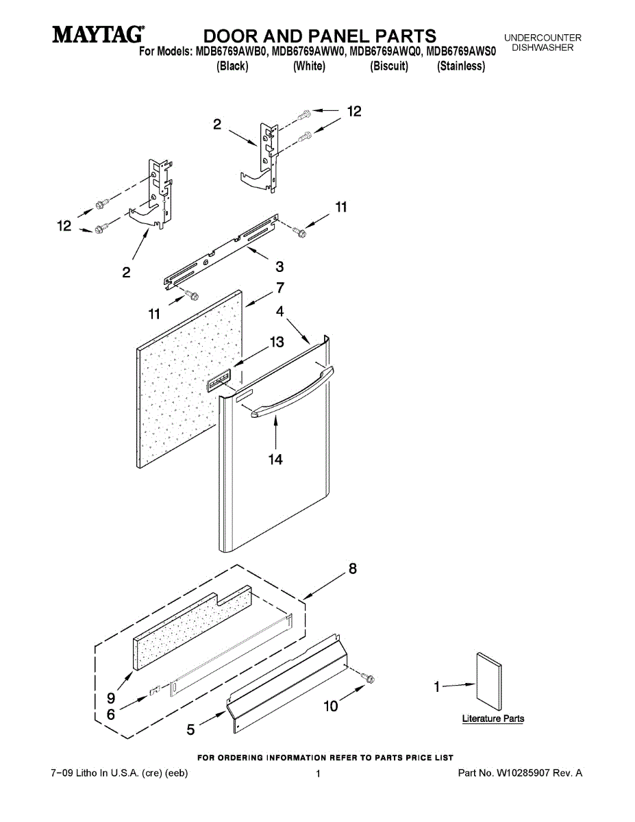 Replacement dishwasher panel that covers and protects internal components. Install to replace a dented, cracked, worn, or missing panel piece.