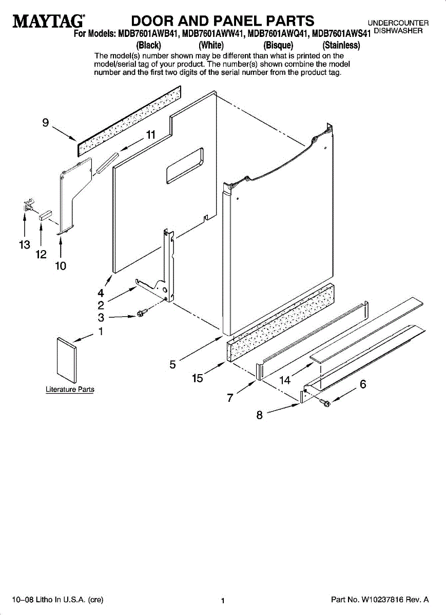 Inner door panel for dishwashers. Covers the interior door frame and provides structural support. Replace if cracked, warped, or damaged from wear.