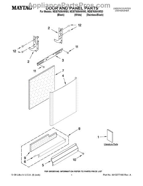 Parts for Maytag MDB7609AWB0: 01 - Door And Panel Parts