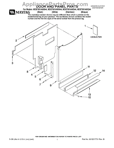 Parts for Maytag MDB7851AWB44: 01 - Door And Panel Parts