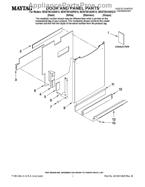 Parts for Maytag MDB7851AWW10: 01 - Door And Panel Parts
