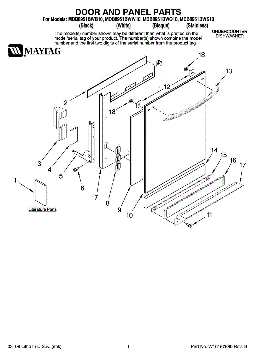 Bracket that secures the dishwasher door hinge assembly. Installs on the side of the tub. Replace if cracked, bowing outward, or damaged.