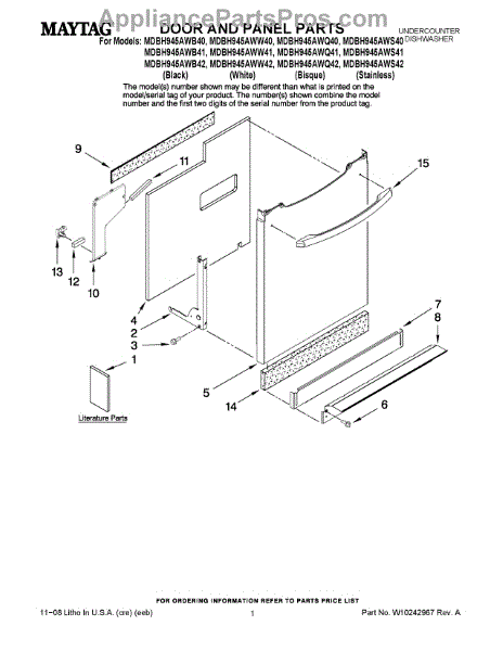 Parts for Maytag MDBH945AWB40: 01 - Door And Panel Parts