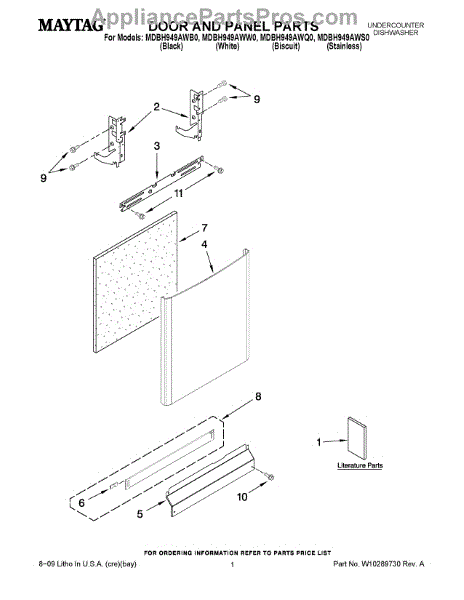 Parts for Maytag MDBH949AWW0: 01 - Door And Panel Parts