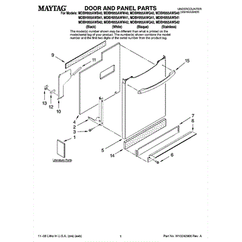 Parts for Maytag MDBH955AWW40: 01 - Door And Panel Parts