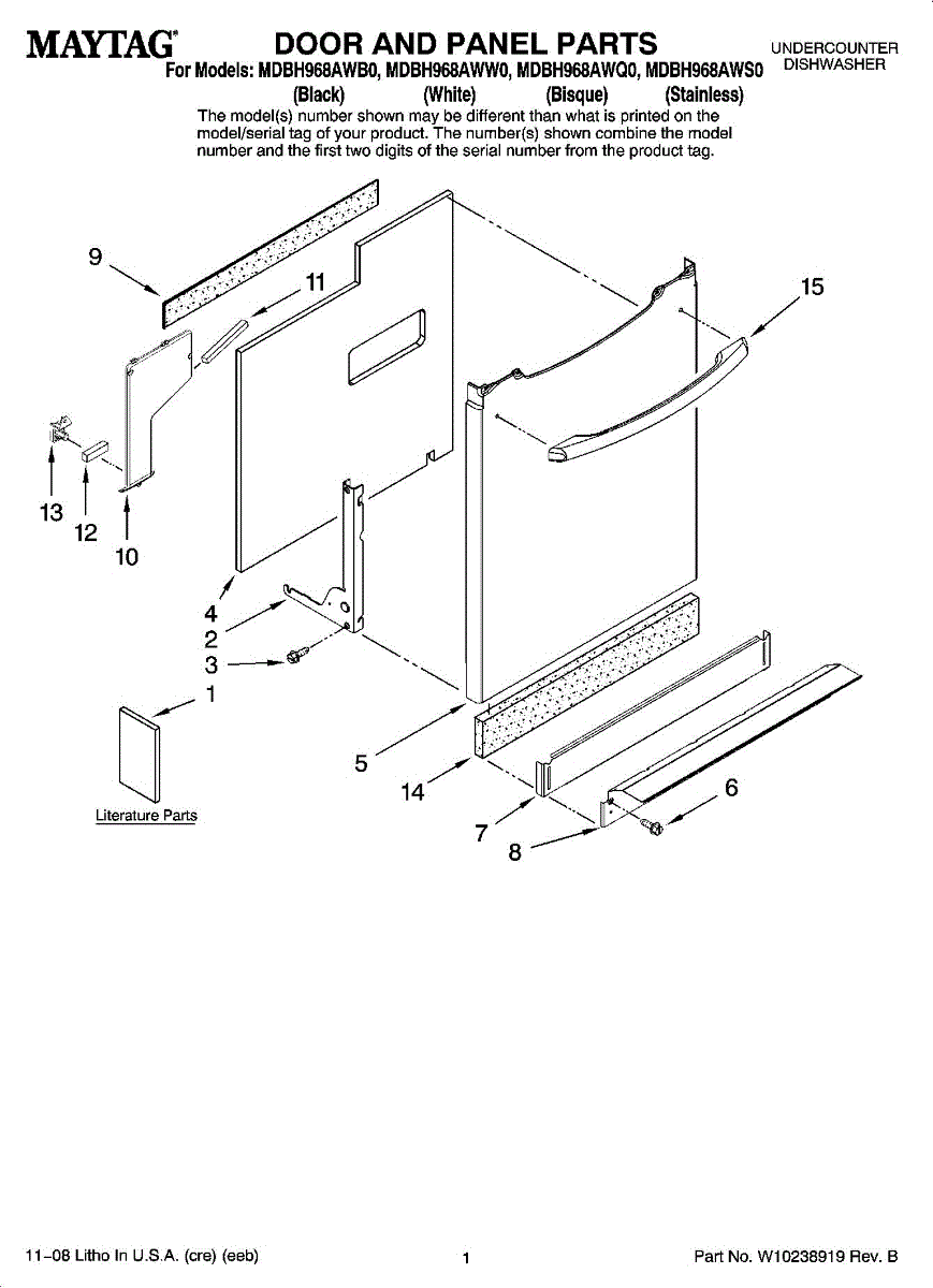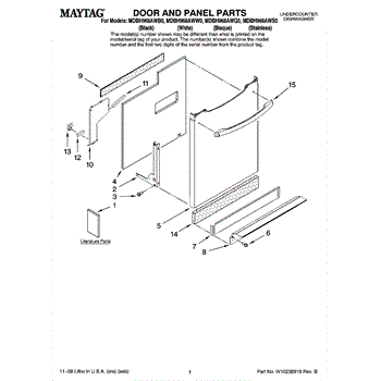 Inner door panel for dishwashers. Covers the interior door frame and provides structural support. Replace if cracked, warped, or damaged from wear.