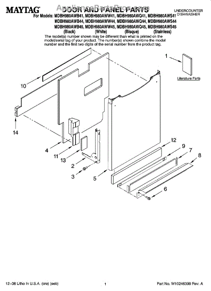 Parts for Maytag MDBH980AWW44: 01 - Door And Panel Parts