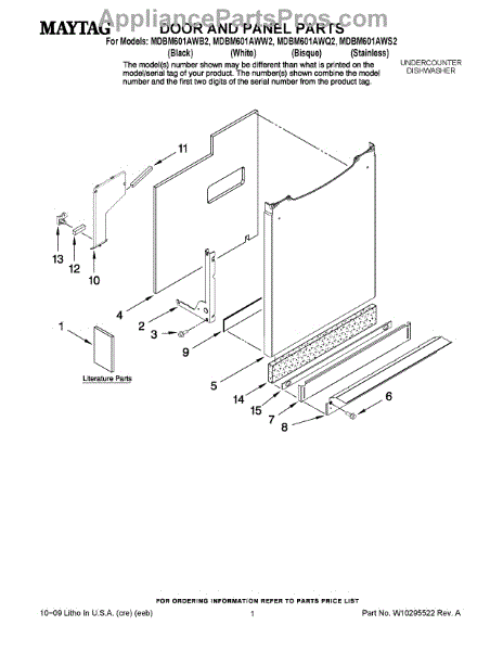Parts for Maytag MDBM601AWW2: 01 - Door And Panel Parts