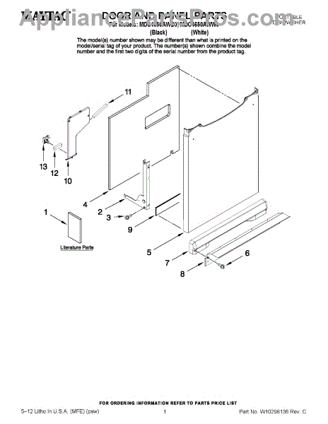 Parts for Maytag MDC4650AWW0: 01 - Door And Panel Parts
