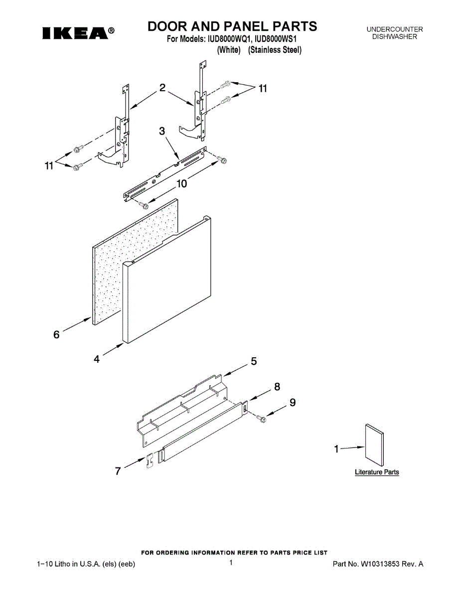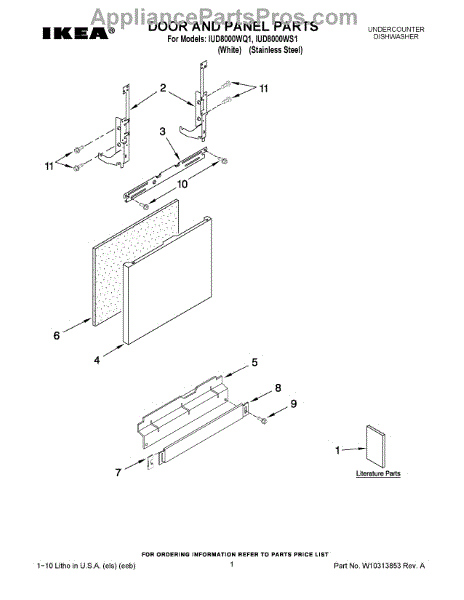 Outer door panel for dishwashers. Installs on the front of the dishwasher door. Replace if scratched, dented, or to change color finishes.