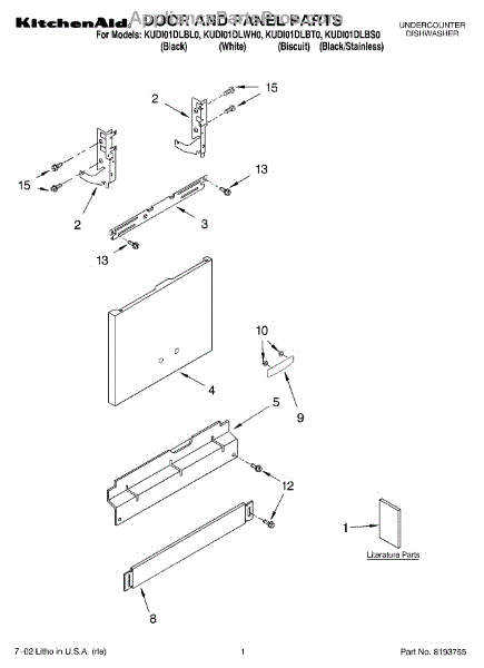 Parts for Kitchenaid KUDI01DLSS0: 01 - Door And Panel, Literature Parts