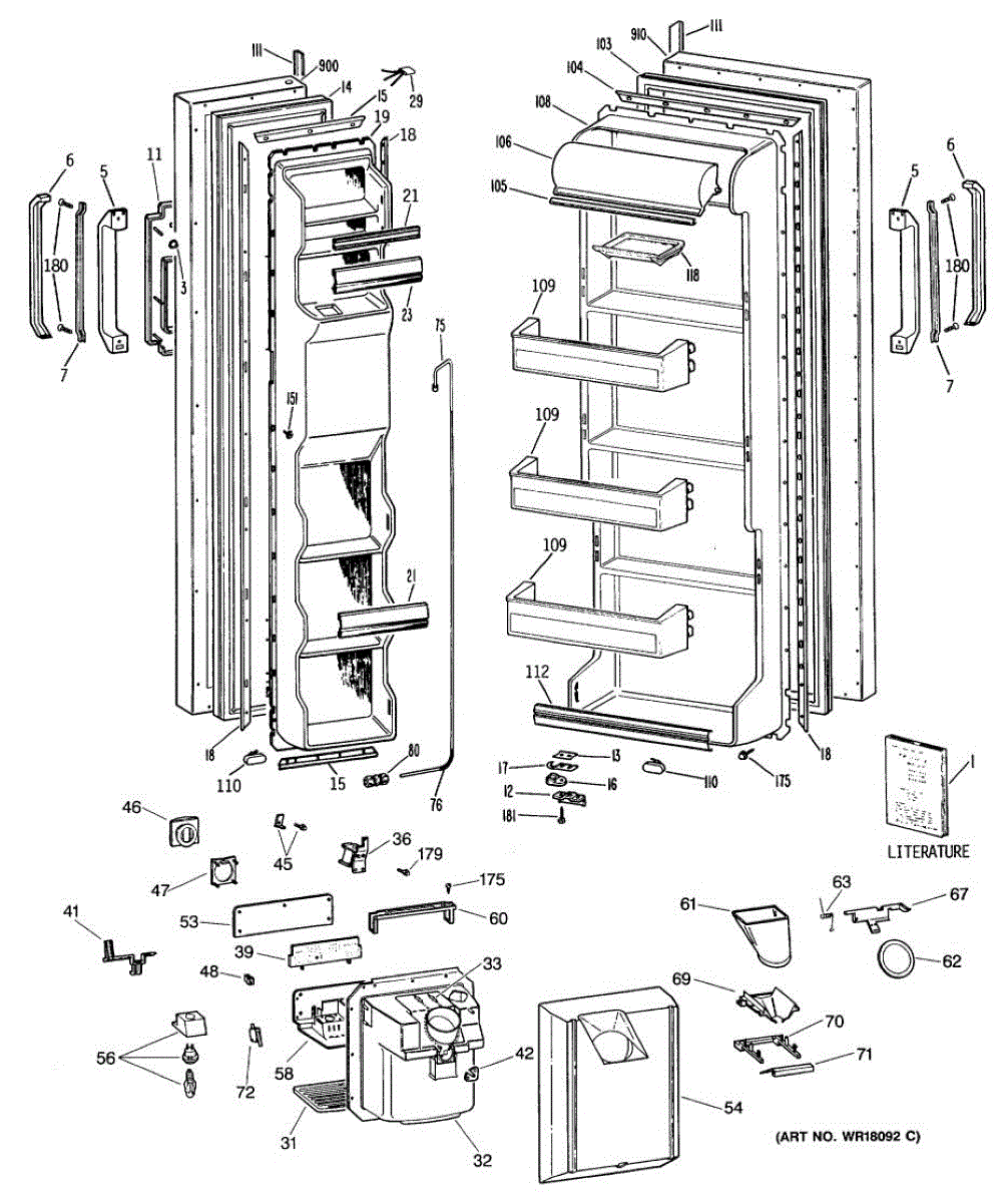 The Ice Door Assembly is an OEM part for GE refrigerators. It is integral to the ice dispenser system, controlling access to the ice chute. This component ensures the efficient delivery of ice cubes or crushed ice when activated and seals off the chute when not in use to maintain the freezer's temperature and prevent frost buildup.