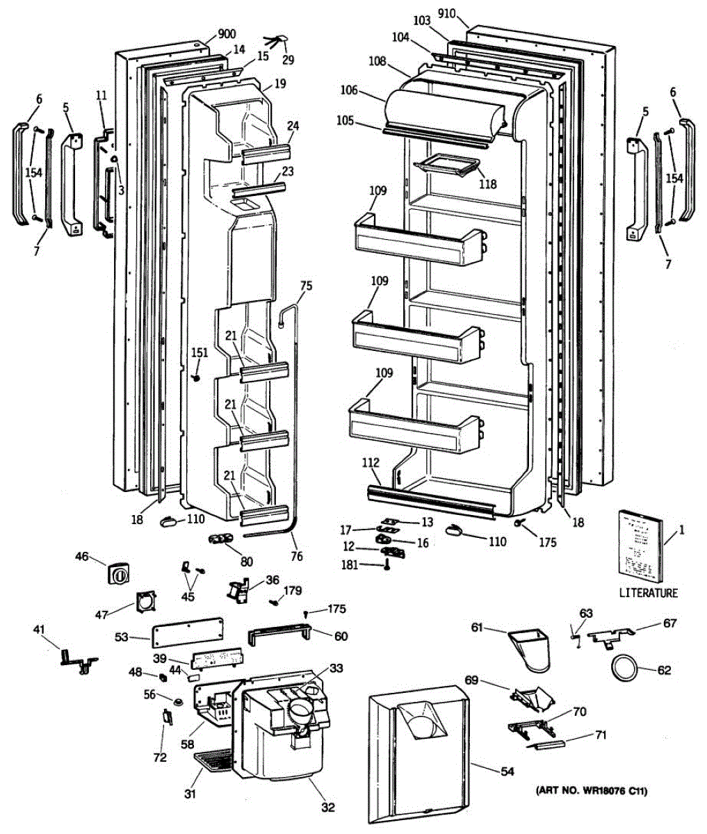 The recess door retainer secures the dispenser's ice chute flapper in the refrigerator door. Replacing a cracked or missing retainer restores proper flapper pivot and sealing to help reduce frost buildup and air leaks around the dispenser.