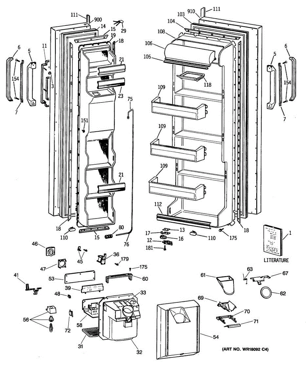 The Ice Door Assembly is an OEM part for GE refrigerators. It is integral to the ice dispenser system, controlling access to the ice chute. This component ensures the efficient delivery of ice cubes or crushed ice when activated and seals off the chute when not in use to maintain the freezer's temperature and prevent frost buildup.