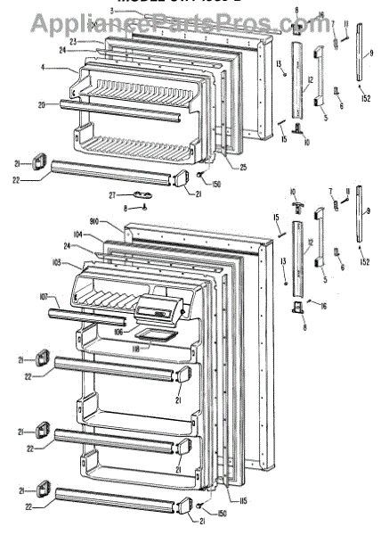 • Generally snaps into existing mounting pegs; remove old door by lifting or releasing retaining tabs
