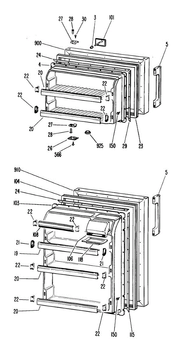 Hardware fasteners for securing refrigerator door panels and components. Includes screws, nuts, and washers for assembly. Replace missing or stripped pieces.