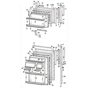 Hardware fasteners for securing refrigerator door panels and components. Includes screws, nuts, and washers for assembly. Replace missing or stripped pieces.