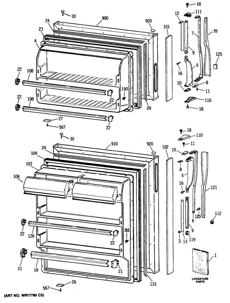 Hardware fasteners for securing refrigerator door panels and components. Includes screws, nuts, and washers for assembly. Replace missing or stripped pieces.