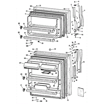 Hardware fasteners for securing refrigerator door panels and components. Includes screws, nuts, and washers for assembly. Replace missing or stripped pieces.