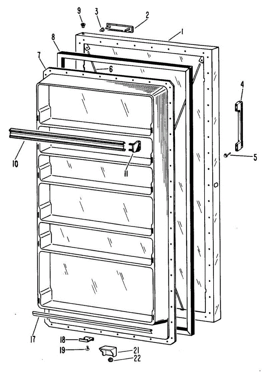 Hardware fasteners for securing refrigerator door panels and components. Includes screws, nuts, and washers for assembly. Replace missing or stripped pieces.