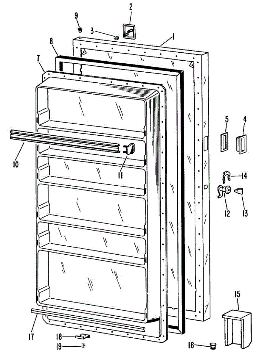 Hardware fasteners for securing refrigerator door panels and components. Includes screws, nuts, and washers for assembly. Replace missing or stripped pieces.