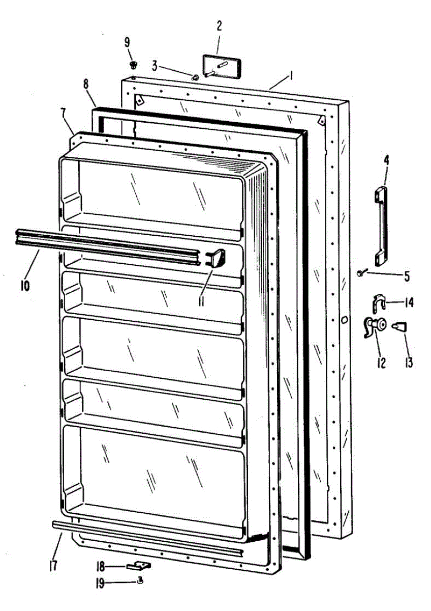 Hardware fasteners for securing refrigerator door panels and components. Includes screws, nuts, and washers for assembly. Replace missing or stripped pieces.