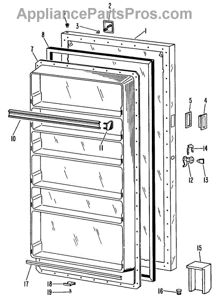 Hardware fasteners for securing refrigerator door panels and components. Includes screws, nuts, and washers for assembly. Replace missing or stripped pieces.