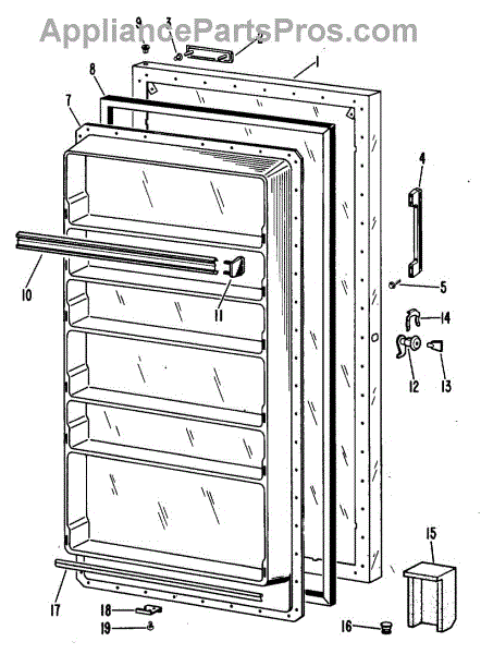 Hardware fasteners for securing refrigerator door panels and components. Includes screws, nuts, and washers for assembly. Replace missing or stripped pieces.