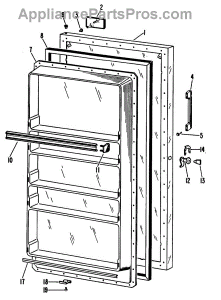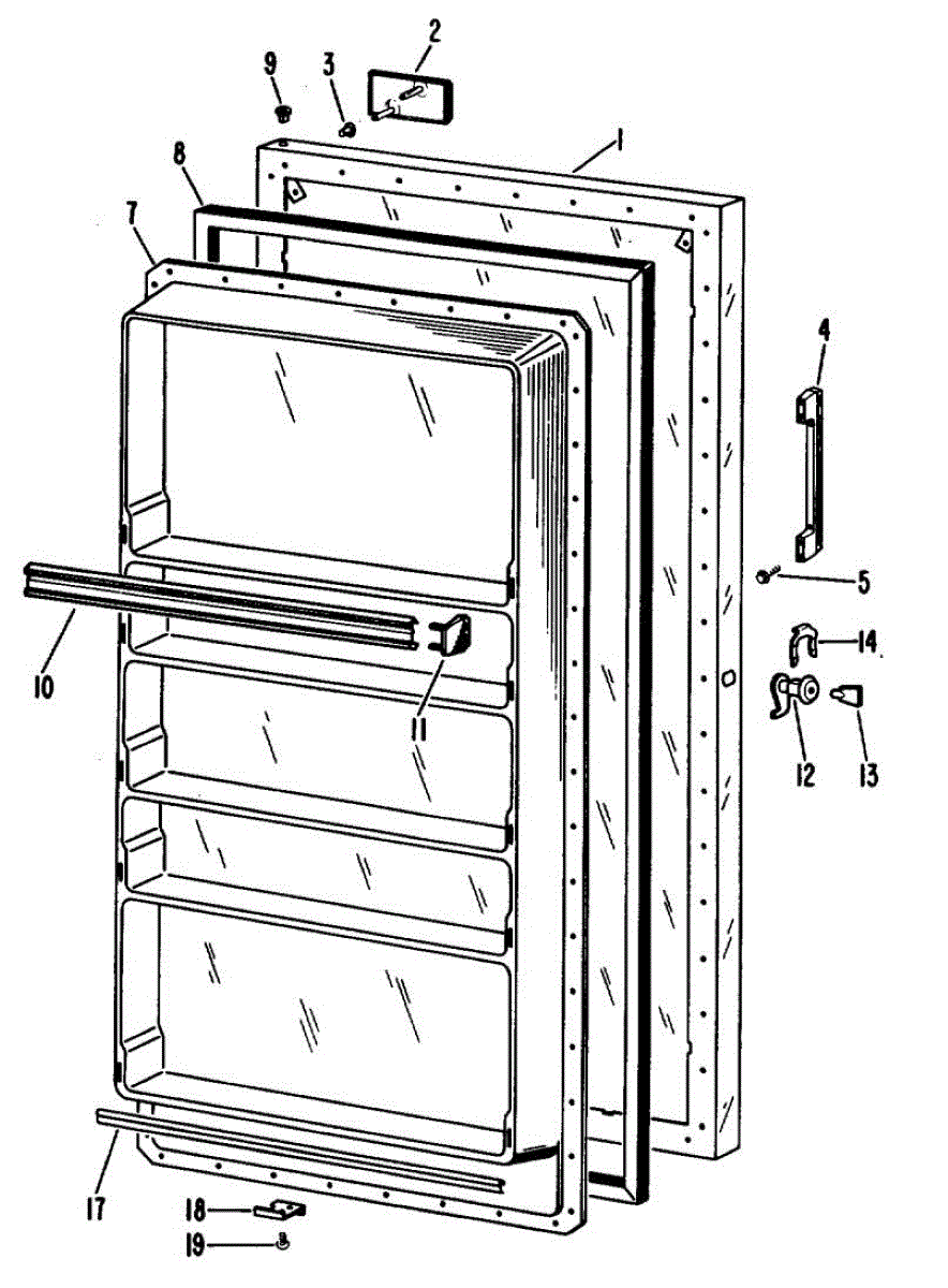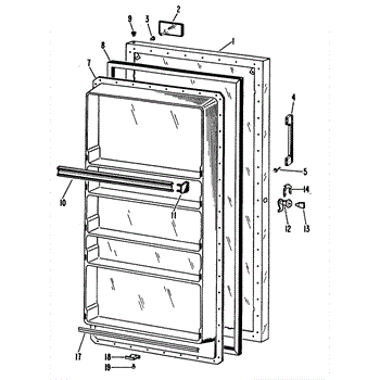 Hardware fasteners for securing refrigerator door panels and components. Includes screws, nuts, and washers for assembly. Replace missing or stripped pieces.