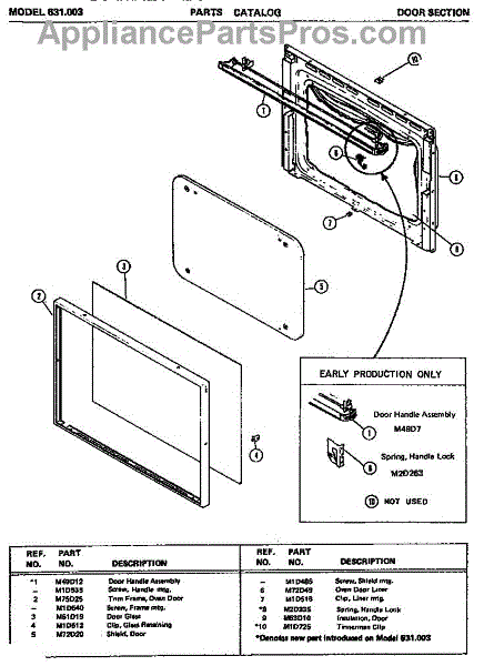 Parts for Amana 631.003: 01 - Door Section Parts