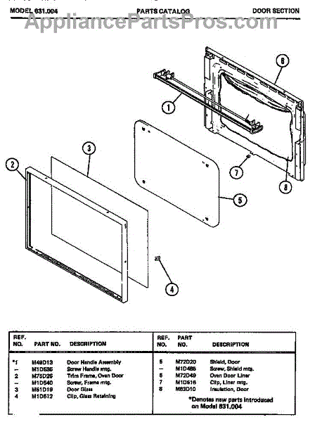 Parts for Amana 631.004: 01 - Door Section Parts