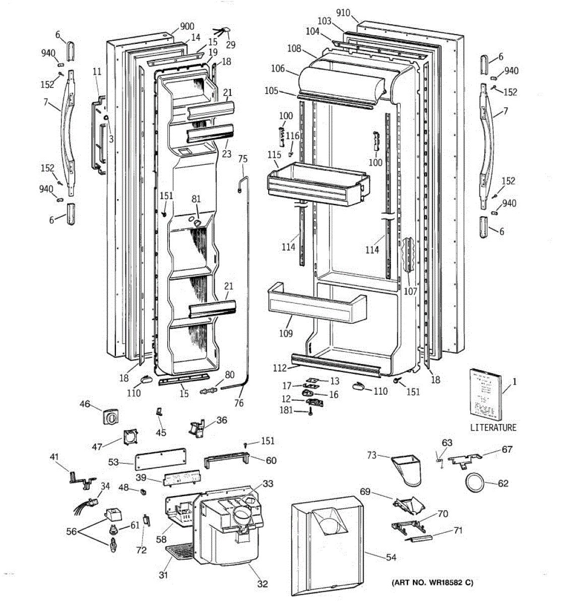 Ice dispenser door assembly seals the ice chute opening on your refrigerator. Replace if cracked, warped, or the rubber gasket is damaged and leaking air.