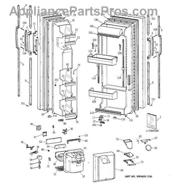 The Ice Door Assembly is an OEM part for GE refrigerators. It is integral to the ice dispenser system, controlling access to the ice chute. This component ensures the efficient delivery of ice cubes or crushed ice when activated and seals off the chute when not in use to maintain the freezer's temperature and prevent frost buildup.